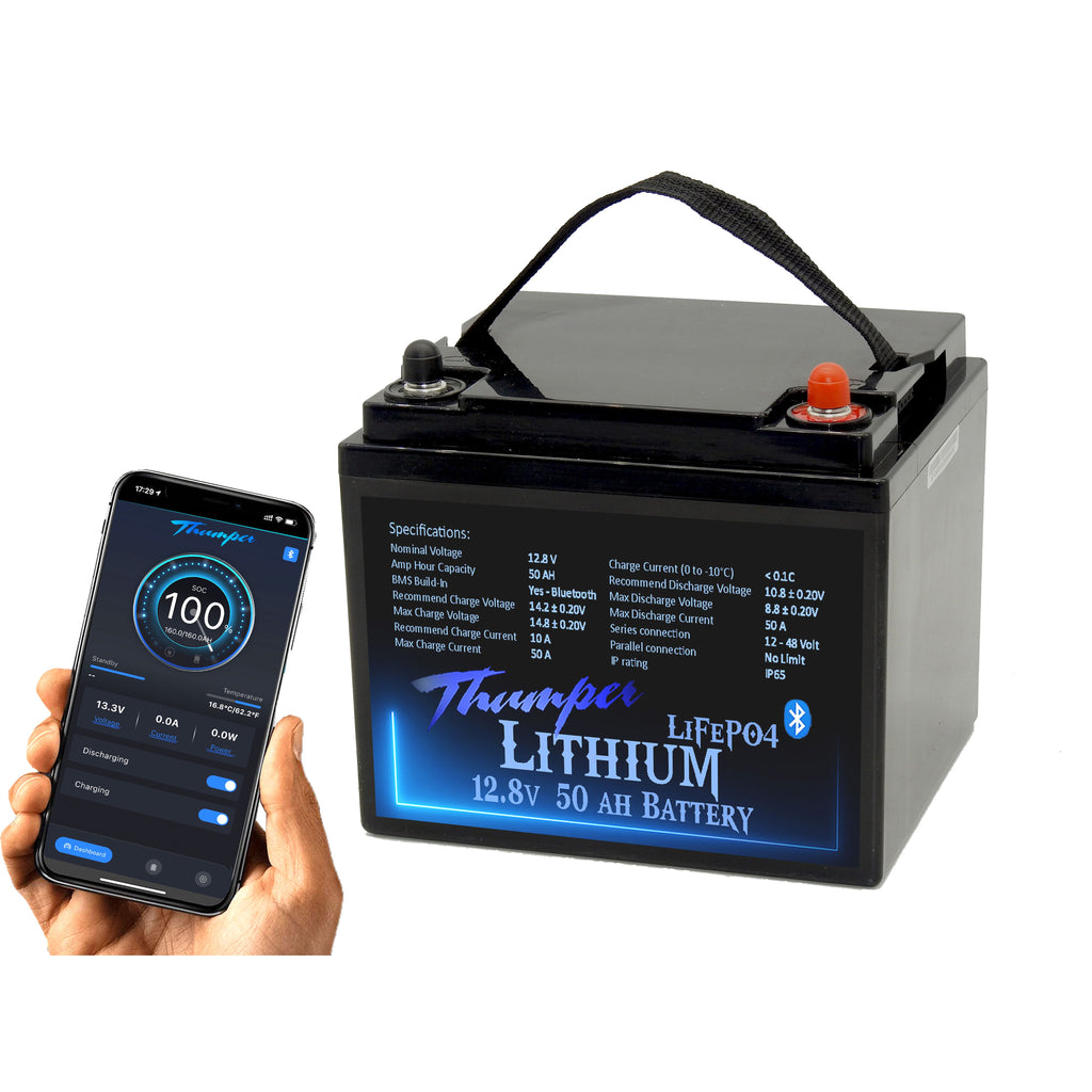 Equipped with an internal battery management system (BMS), the Thumper Lithium offers safe charging and discharging with over temperature protection, under and over voltage cut off protection and also internal short circuit protection.