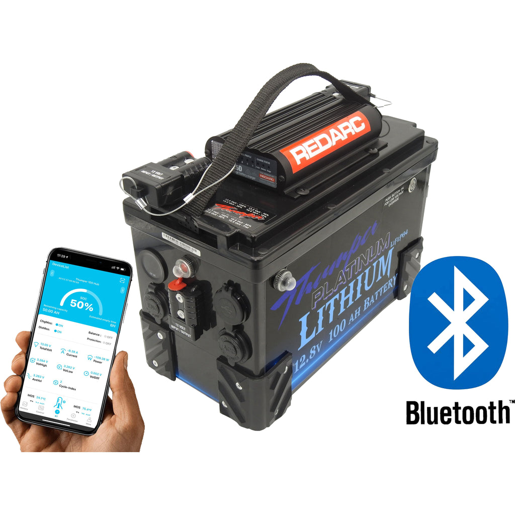 The Thumper Battery Hub has been designed to offer both portability and reliability with its light weight and compact design. Now equipped with Bluetooth technology for remote battery monitoring of capacity, cell temperature and remote power shut down; The features of the Thumper Lithium Battery Hub Bluetooth are truly second to none.