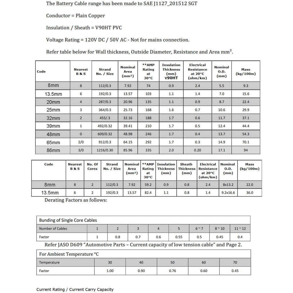 The 13.5mm SINGLE core automotive cable is the perfect option for running to fuse boxes, accessory sockets or a charge line for your secondary (AUX) battery.