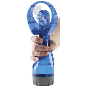 Be cool and comfortable while outdoors with this personal water mister and fan in one. It is handy and portable with a moulded hand grip and trigger pump for ease of use. Powerful enough to provide a significant amount of breeze but safe enough for the kids to use with soft blades. Great for use while camping, at the beach, or at sporting events etc.