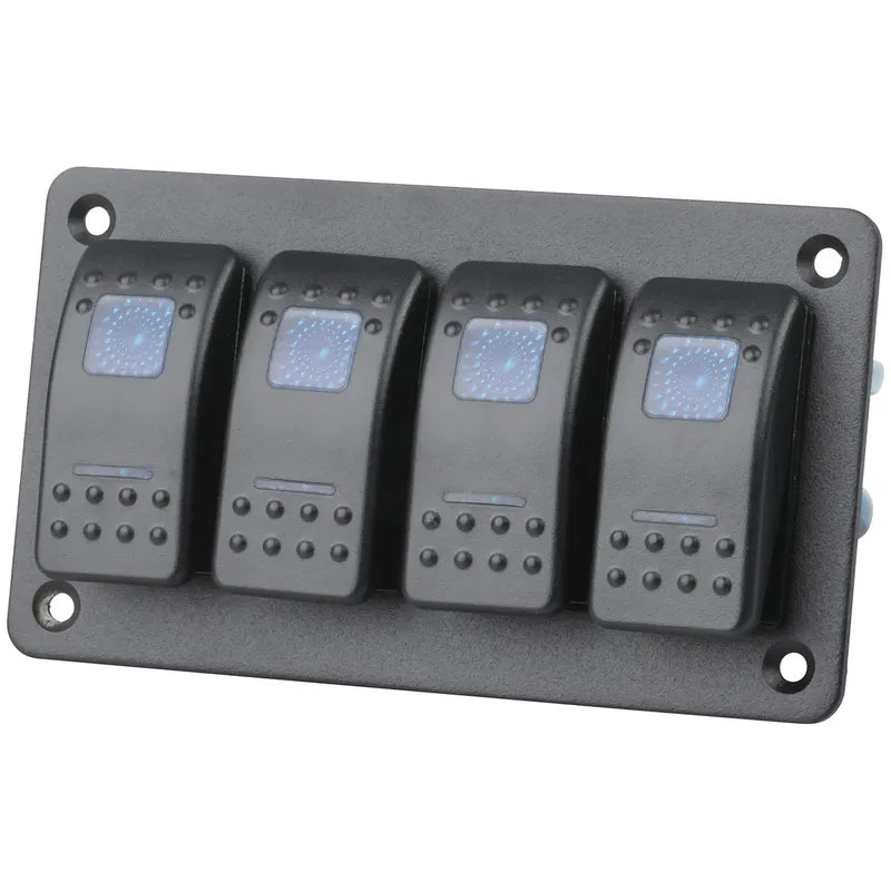 Straight forward installation and wiring, with just four connections - everything else is pre-wired! Then all you need to do is connect your various peripheral devices. Switches are rated at 20A for a 12V system (10A for 24V) up to a maximum 45A per panel. The LED illumination is powered separately, so you can run it through a switch or dimmer too.