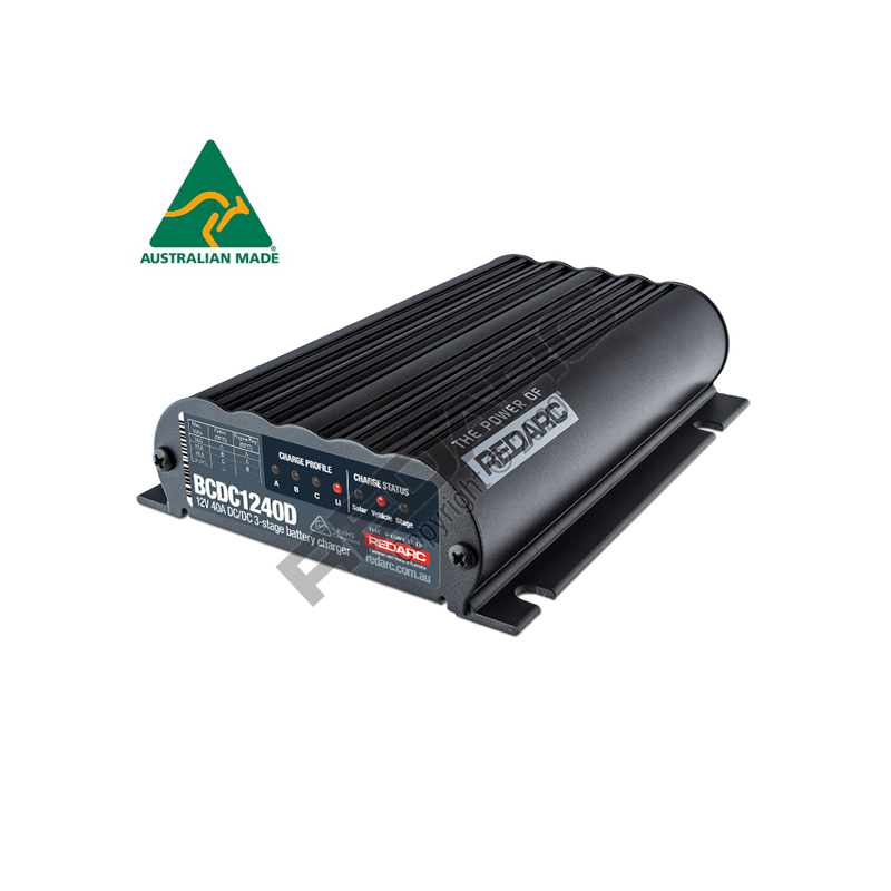 As a guide, the BCDC1240D is used for battery bank sizes over 200AH. For smaller batteries of 75-200AH REDARC recommends the BCDC1225D.