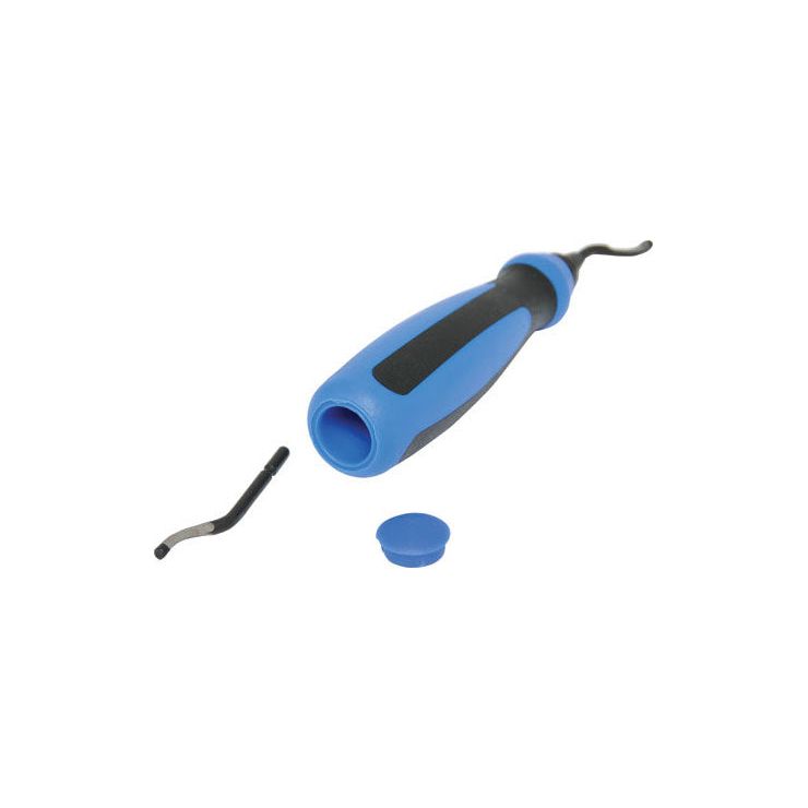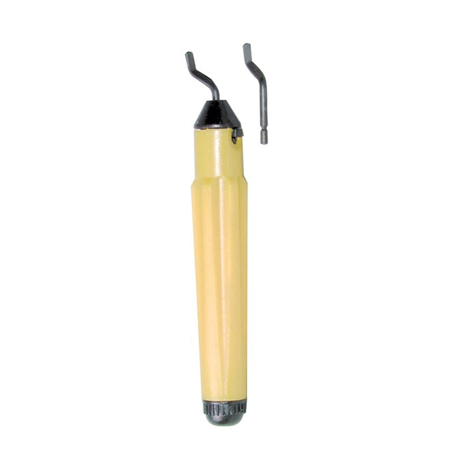 This 150mm long, deburring external chamfer tool is a perfect addition to any deburring blades and tool collection. It's suitable for the removal of burrs on plastic, wood, metal, copper, aluminium, and ferrous metal tubing or holes. This hand tool features a high quality SUJ2 blade which follows shapes and contours easily allowing chamfering and deburring. The tool also features a PVC duplex handle so the user can use the tool comfortably and a spare replaceable blade inside the handle body.