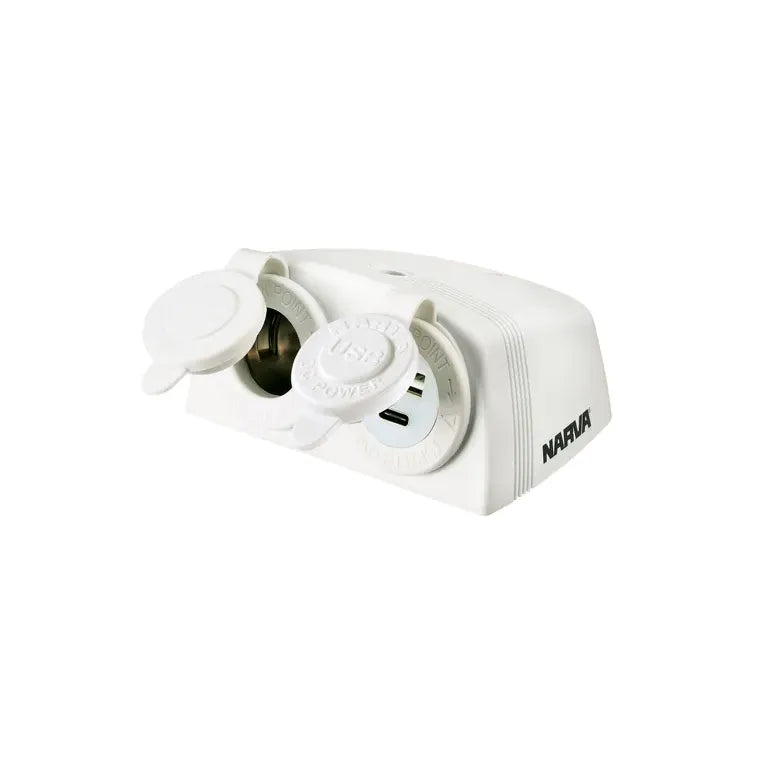 Narva Heavy-Duty Surface Mount Accessory/Dual USB, USB-C Sockets | 81173WBL