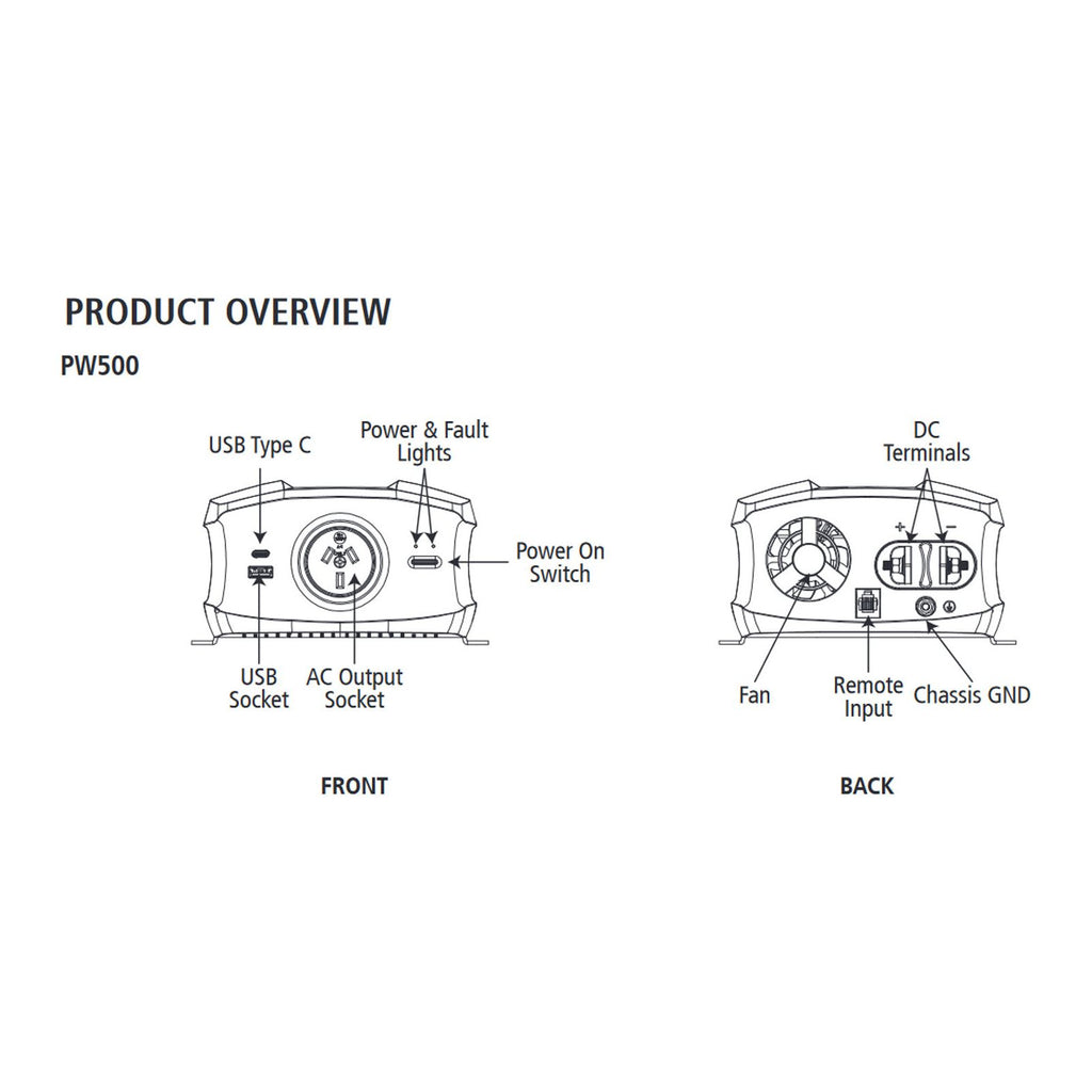 The Projecta PW500 has targeted to heavy draw appliances such as 240 volt TV's, Laptops, Gaming consoles, bar fridge, charging tool batteries and more.