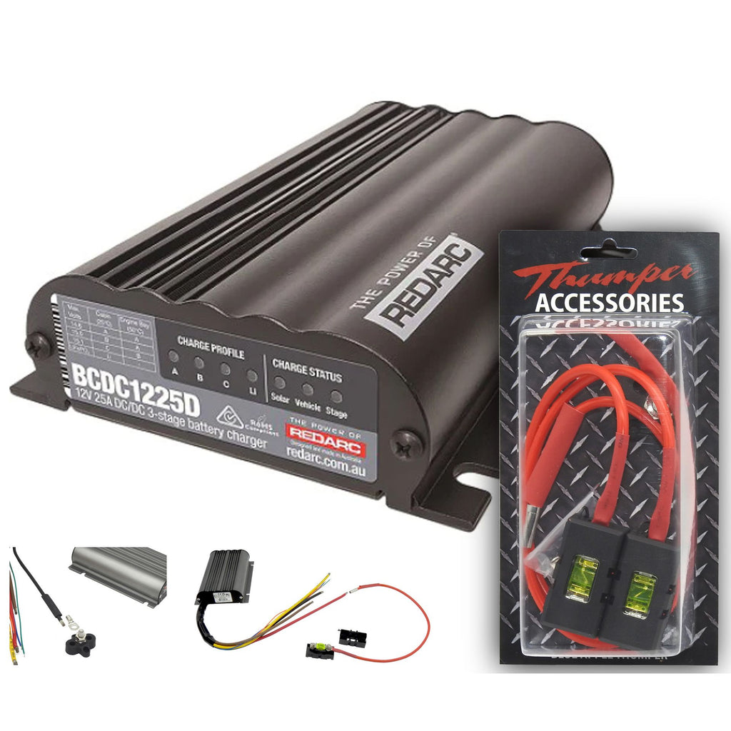 For most applications, the BCDC1225D is suitable for battery bank sizes of 75-200AH. For higher capacity needs of over 200AH, REDARC recommends the BCDC1240D.