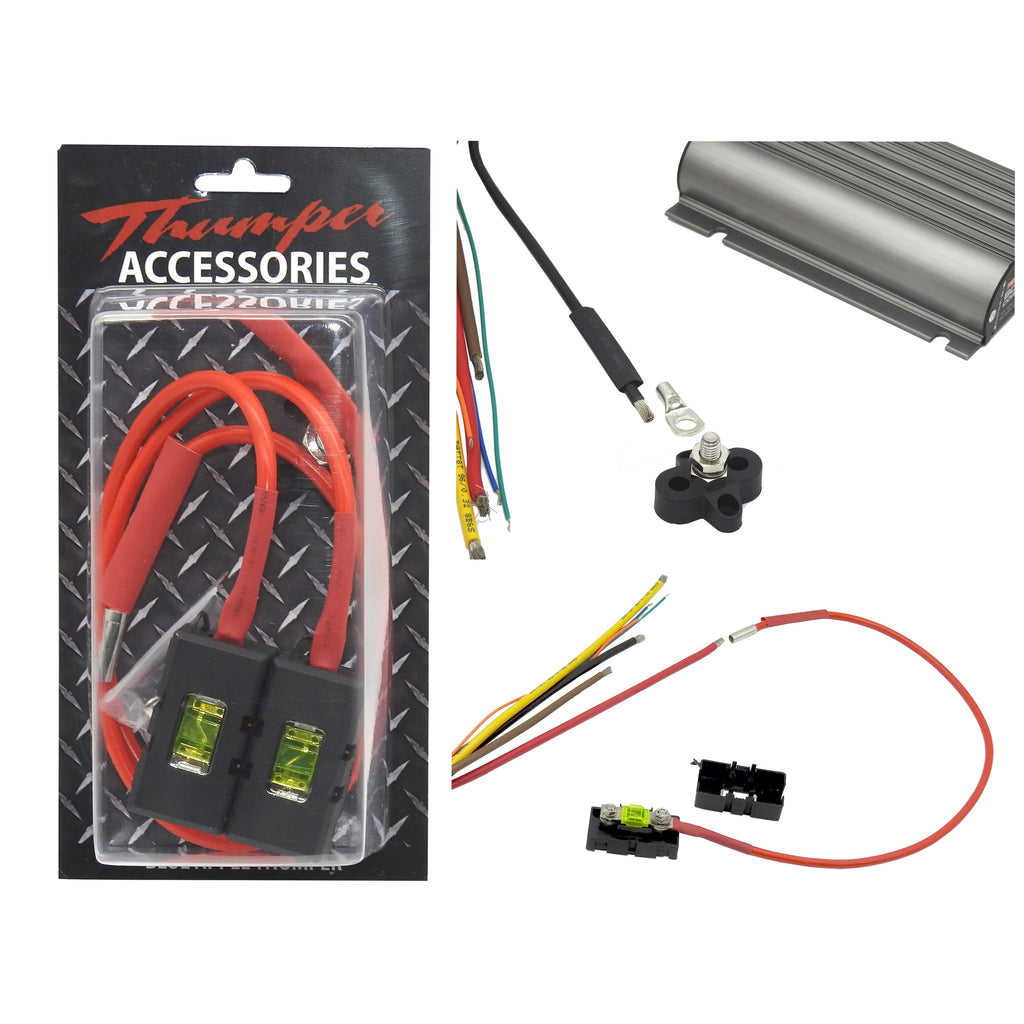 This DC wiring loom will allow you to add your selection of cable to continue the run from the Midi Fuse bolt to feed both the alternator input and the AUX battery connection.