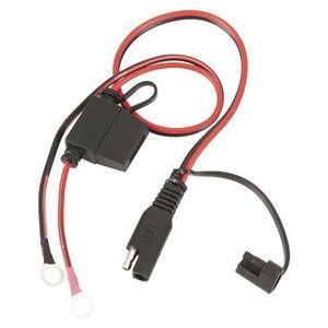 This unit consists of the popular polarised SAE plug/skt to two 8mm eyelet connectors (Red for +ve and Black for -ve), The lead comes with waterproof cap for the SAE connector and on positive lead has a waterproof blade fuse holder with a 7.5A fuse included.