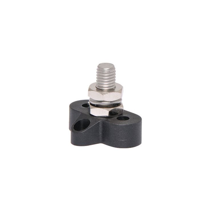 This Single Black M10 Power Distribution Post is a heavy duty stainless steel post that is mounted on a moulded plastic base. 48V DC max.
