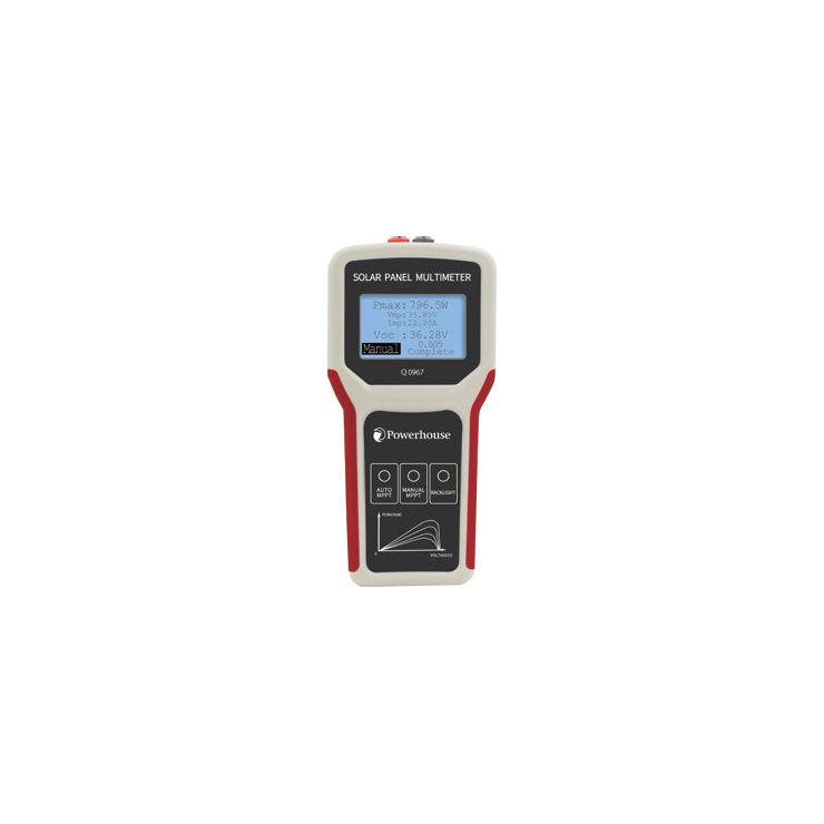 Designed for measuring voltage, current and power of connected PV solar panels up to 800W. This meter provides instant feedback on PV system operation and allows optimal placement of solar panels for maximum energy conversion. Features both auto and manual MPPT interval measurement, plus an easy to read backlit LCD screen. Includes MC4 connection cable, croc clip cable and carry case.
