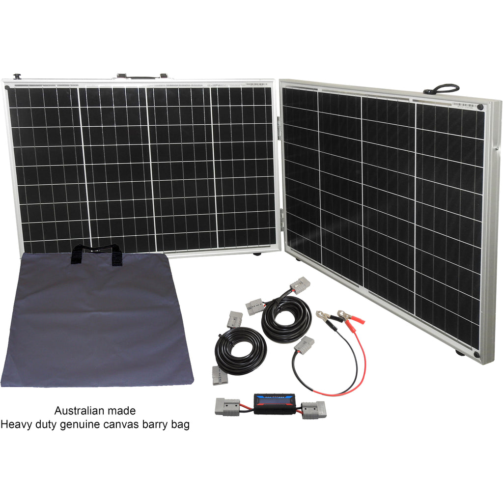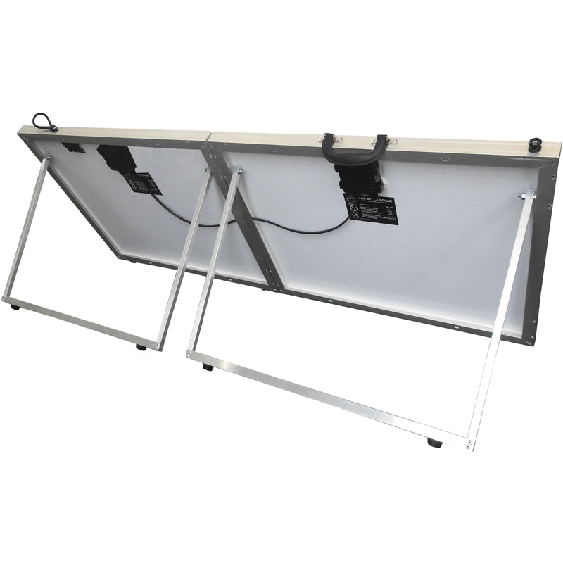 This neat design consists of 2 x 55 watt panels hinged together, so when folded the glass panels will fold in facing one another; adding extra protection to the panel. Once folded, the panel can slide straight into the provided carry bag, allowing for easy transport.