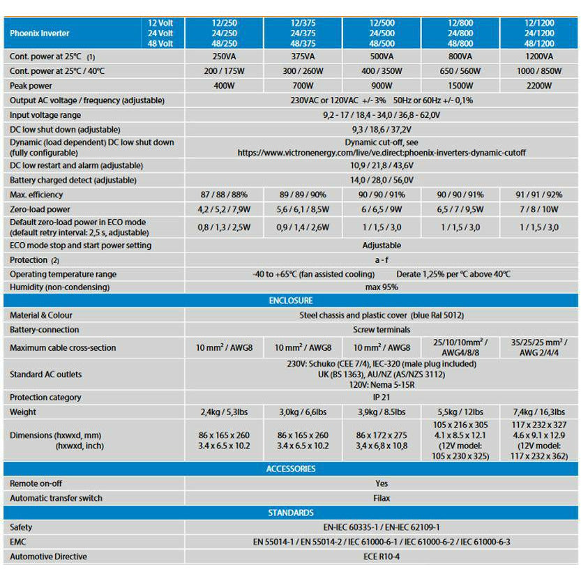 Phoenix Inverters are built to last. They feature sophisticated full-bridge and toroidal transformer topology - which is suitable for powering sensitive electronics. They are overload, temperature, and short-circuit protected.